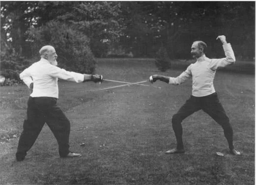 Ettinger (left) and Montgomerie fencing at Thurlow 1903